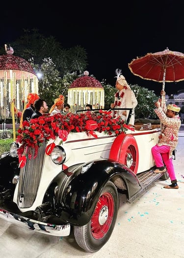 Explore our vintage car collection, band services, lightning decoration, and more for a seamless and stylish wedding experience.